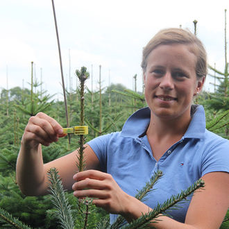 Dörte ist Christians Frau. Sie ist nicht auf einem Hof aufgewachsen, hat aber Landwirtschaft studiert und arbeitet als Redakteurin beim Wochenblatt für Landwirtschaft und Landleben in Münster. Eigentlich schlägt ihr Herz für Kühe. Mit Christians Weihnachtsbäumen hat sie sich schnell angefreundet. Auf dem Hof ist vor allem ihre Multitasking-Fähigkeit gefragt - Kinderspielscheune, Telefon, Bestellungen, Kinder, Ponys.